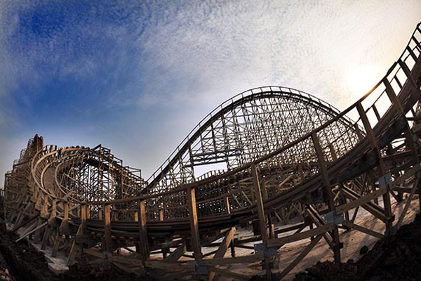 它是過山車的鼻祖,它跨越太平洋,源自北美,它除基礎部位外全由木頭拼接而成,這條云騰醉臥蜿蜒盤旋的木質巨龍,在運行中發出碰撞聲,急速上升下降,經歷各種扭曲和轉彎的軌道,給你91公里/小時的極速體驗,全程1060米搖擺與震動的呼嘯之旅!