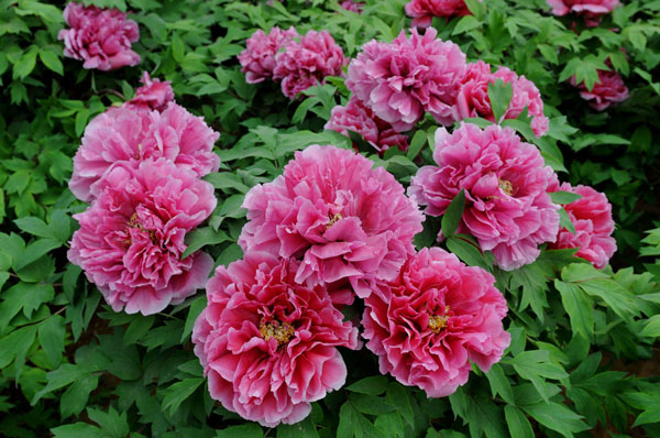 洛陽白云山高山牡丹園無論海拔高度,還是牡丹品種、種植規(guī)模,均居中國之最。高山牡丹生長在海拔1530米的白云山,約有200余畝。園中栽植牡丹156個品種5.6萬株。 早期開放的有:青山靈雪、清香白、鳳丹、酒醉楊妃、醉蘭、狀元紅、朱砂壘等;中期開放的有:兩喬、白雪塔、趙粉、錦帳芙蓉、粉中黃、魯粉、一品朱衣等;晚期開放的主要有:盛丹爐、銀粉金麟、飛燕紅妝、藍線界玉等。