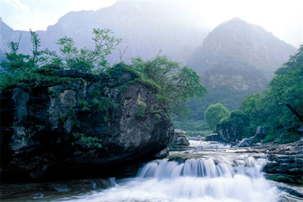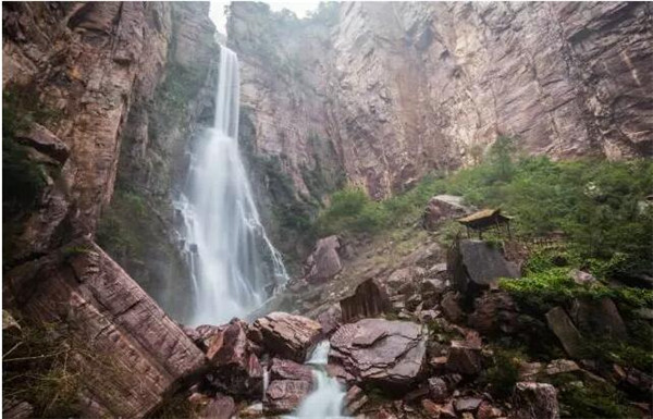 關山景區以紅石峽、石柱林為代表,堪稱“太行至尊靈水世界,華夏第一滑塌奇觀”,集南太行水體景觀和滑塌峰林這一獨特的地質地貌于一體,融飛瀑流泉、清溪幽潭、石奇崖秀、峽險苔鮮、群柱聳峙、峰林競秀、云海飛渡于一身,構成完整的風景體系,是南太行壯美與柔美的典范,宛若一幅山水畫立體長卷。
