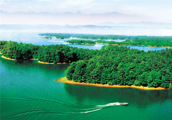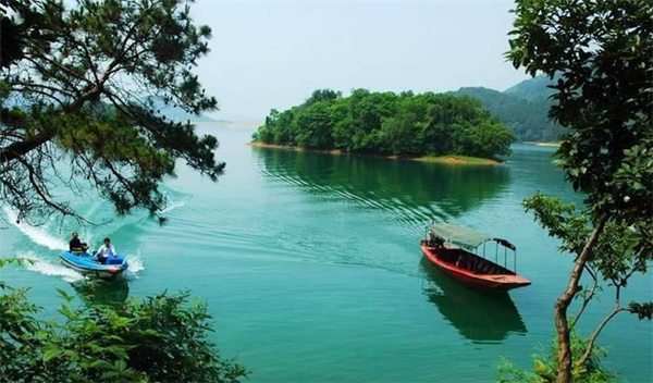 環湖皆山,湖光瀲滟,山色蔥翠,風光旖旎多姿,分外妖嬈,島上綠樹成林,蒼翠欲滴。或乘船輕舟泛游,看湖光山色,聽鳥語蟬鳴;或深山探幽,聽瀑濤水聲,品信陽毛尖,食南灣魚;或登諸島漫步,在天然“氧吧”吸氧,觀賞奇花異草,稱得上是步步奇觀,處處佳境,詩情畫意,美不勝收。