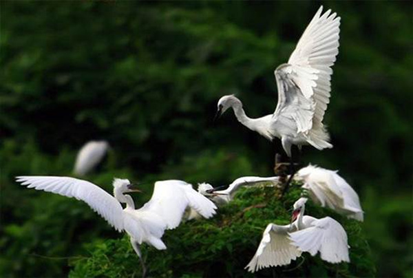 鳥島面積520畝,分為旅游開放區和鳥類保護區,鳥島上植被繁茂,環境幽靜。每年春夏季節有近27種候鳥至此繁衍,數量多達10余萬只,其中尤以鷺鷥鳥為主。主要景點鳥語林,是集鳥類觀賞、鳥藝表演、鳥類繁殖、科普教育為一體的大型主題公園。