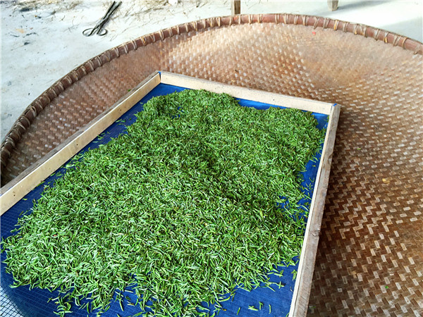 信陽毛尖加工上非常工藝,信陽毛尖炒制工藝獨特,炒制分“生鍋”、“熟鍋”、“烘焙”三道工序,用雙鍋變溫法進行。