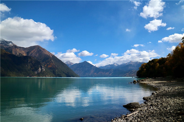 出八宿翻越安久拉山抵達美麗的湖畔小鎮“然烏”,然烏湖是著名的高原冰川湖,也是帕隆藏布江發源地,海拔3850米,湖畔是茂密的原始森林,碧藍的湖水,森林倒映,清澈見底,湖面的水鳥成群,一派仙境景色。
