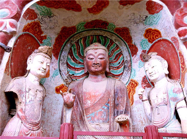 麥積山石窟被譽為“東方雕塑館”,為中國四大石窟之一,也是聞名世界的藝術寶庫。 麥積山是我國秦嶺山脈西端小隴山中的一座奇峰,海拔1742米,但山高離地面只有142米,山的形狀奇特,孤峰突起,猶如麥垛,因此人們稱之為麥積山,麥積山石窟的一個顯著特點是洞窟所處位置極其驚險,大都開鑿在懸崖峭壁 之上,洞窟之間全靠架設在崖面上的凌空棧道通達。游人攀登上這些 蜿蜒曲折的凌空棧道,不禁驚心動魄。古人曾稱贊這些工程:“峭壁之間,鐫石成佛,萬龕千窟。碎自人力,疑是神功。”