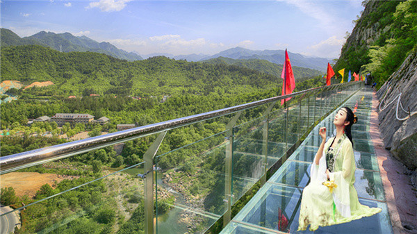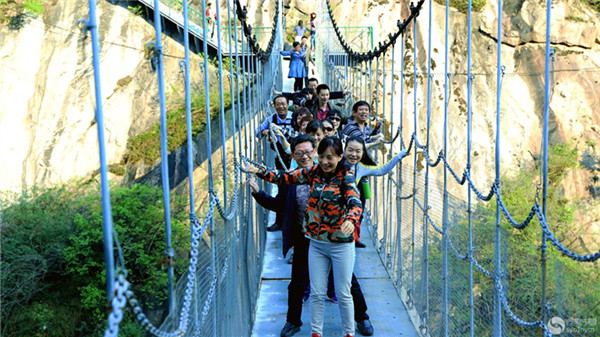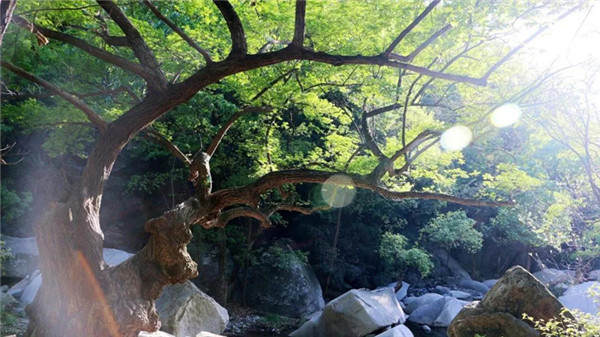 08:30 游覽神奇的中原九寨——五道幢景區,觀玉女潭,仙人潭,線泉穿石,仙人臉譜,太極穴,姐妹橋,中原奇觀“陽光三疊”瀑布群等數十個景點,登中原第一棧道——刀棱山棧道(約3.5小時)