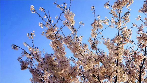 園里的櫻花,就像一位嬌羞的姑娘含苞待放,紅中透著粉,粉里帶著紫,每一朵都牽動人心。