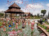 享受花叢中的香溫泉-花都溫泉,泡養生溫泉放松;103個風格迥異的室外園林湯池和室內中庭式湯池。