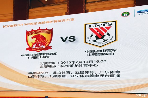 在新聞發布會上,長安福特與中國福特寶足球產業發展公司正式簽訂了合作協議,同時還宣布2015年至2017年其旗下全系產品將作為中國足協超級杯賽事的唯一官方用車。中國足協超級杯是國內含金量最高的單場足球賽事。長安福特2015中國足協超級杯將于2月14日在杭州黃龍體育場舉行,屆時,我們將欣賞到2014賽季中超冠軍廣州恒大與2014中國足協杯冠軍山東魯能上演的巔峰對決。