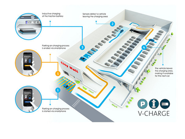 在自動泊車領域,大眾也有新的研究。V-Charge系統提供了在不久將來自動泊車的圖景,項目重點關注停車位的自動搜索以及電動車的充電。