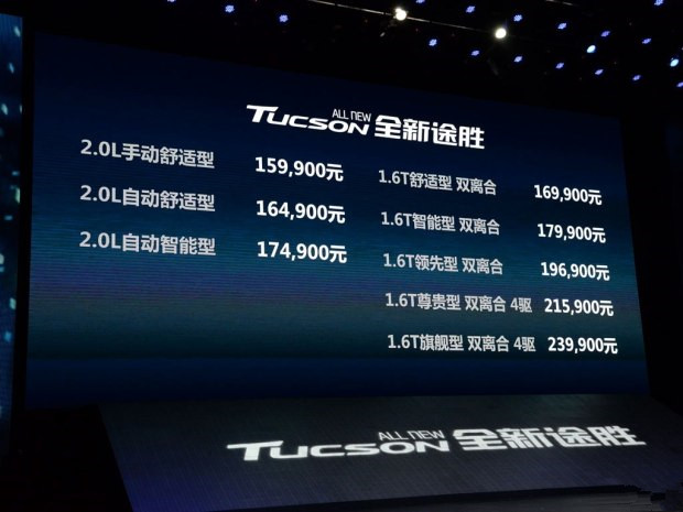 日前,北京現代全新途勝在成都正式上市,新車將推出搭載2.0L和1.6T發動機的共8款車型,售價區間為15.99-23.99萬元。詳細售價請見下表: