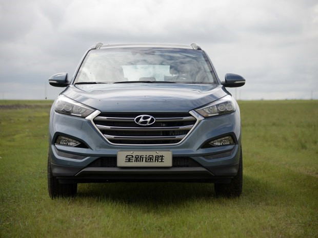 作為現款ix35的換代車型,全新途勝前臉繼承了現代家族式的六邊形設計,其格柵整體尺寸進一步加大,內部三橫幅的造型給人感覺更加成熟。同時,新車前大燈采用了較為修長的設計,其日間行車燈及近光燈均融入了LED光源。此外,該車在前保險杠兩側裝配了一體式的前霧燈及日間行車燈。