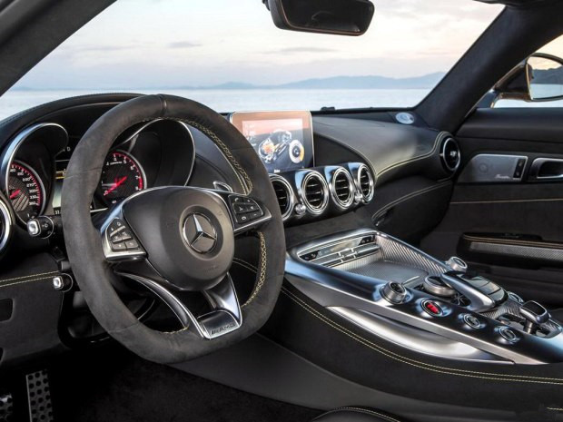 在內(nèi)飾部分,AMG GT的設計采用了奔馳最新的家族式設計,搭載了多功能方向盤、炮筒式儀表盤等,并在多處細節(jié)采用碳纖維材料進行打造,凸顯了運動氣息。