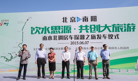 6月7日,“飲水思源,共創大旅游”北京—南陽南水北調房車探源之旅發車儀式在南水北調進京終點北京團城湖園區隆重舉行。北京市人民政府副秘書長劉志、北京市旅游發展委員會主任宋宇、北京市支援合作辦副主任梁義、北京市南水北調辦副主任何鳳慈、南陽市人民政府副市長和學民、北京市旅游行業協會副會長、汽車露營旅游分會會長安慶衡等有關領導出席發車儀式。發車儀式上,宋宇、和學民先后致辭,劉志為活動鳴槍發令。