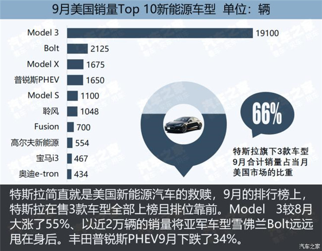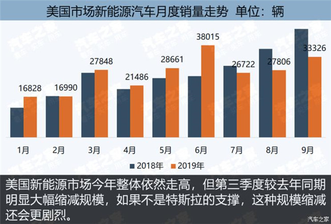 2、美國同樣出現連續三個月的同比下滑,如果沒有特斯拉這根頂梁柱,情勢還要慘烈。