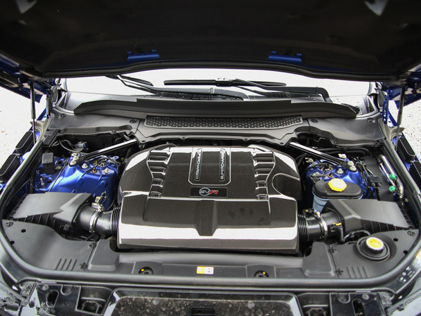 發動機是一臺車的心臟。搭載在這臺SVR上的發動機基于路虎攬勝的那臺5.0T V8機械增壓發動機打造而來。來自Special Vehicle Operations team的工程師小心翼翼地通過優化博世的發動機管理系統,并且重新調整了機械增壓器的電子旁通閥,以令其在激烈駕駛中能夠提供更大的壓力。這樣一來,發動機的最大功率提升了40Ps,最大扭矩提升了56Nm。