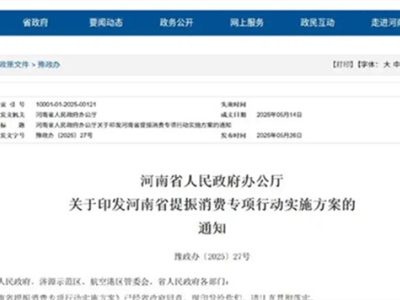 近日,河南省人民政府辦公廳印發《河南省提振消費專項行動實施方案》。