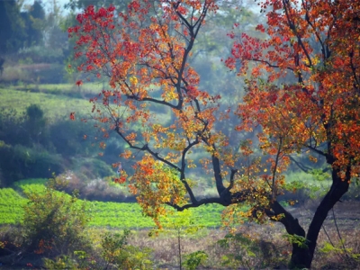 新縣箭廠河鄉有6000多株烏桕樹,其中100余株樹齡在百年以上,石崗村至黃谷畈村的國道230沿線,戴畈三甲沖至何崗,掩映在村民房前屋后的烏桕樹紅得像火。每年秋末冬初,美麗的“烏桕紅”吸引全國各地的攝影愛好者云集于此。