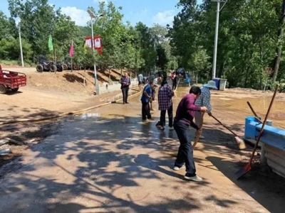8月15日,一臺(tái)挖掘機(jī)在魯山縣倉(cāng)頭鄉(xiāng)白窯村的一處項(xiàng)目工地忙著施工,多名工人在機(jī)械配合下刨除道路旁邊的枯樹(shù),清理溝渠里的雜物。