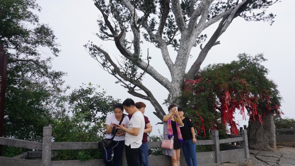 神農山新的游客服務中心和停車場建好之后的大氣壯觀,讓之前來過三次的領隊青青也眼前一亮。停好車之后,車友們在神農山景區(qū)門前合影留念,之后排隊領票進入景區(qū)分開游玩。