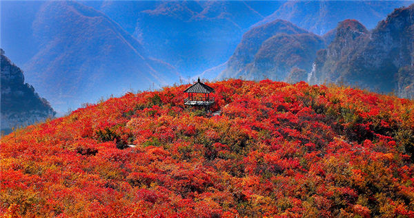 靳家?guī)X游覽區(qū),是焦作秋季太行紅葉的最佳觀賞地。靳家?guī)X紅葉面積大,色澤鮮—鮮紅的嬌艷欲滴,深紅的絢若晚霞,紫紅的流光溢彩;靳家?guī)X紅葉品種多—既有南方燦爛的櫨葉,又有北方火紅的楓葉,更有樹齡達(dá)2500余年的黃櫨王,種類齊全,兼容南北。