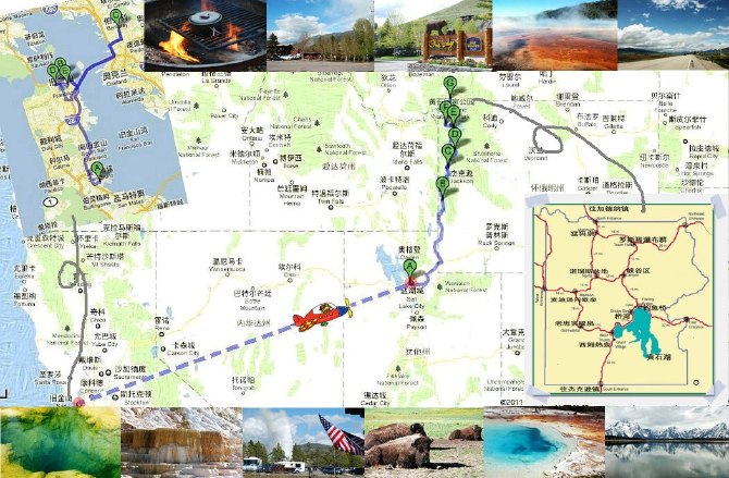 旅行路線:上海飛洛杉磯再飛鹽湖城,駕車去大提頓和黃石往返,飛回洛杉磯再租車。