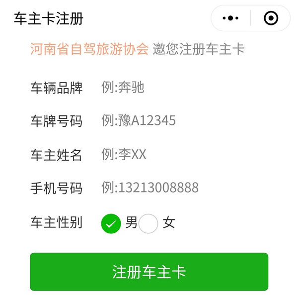 步驟二:進入“自駕車主卡”注冊頁面