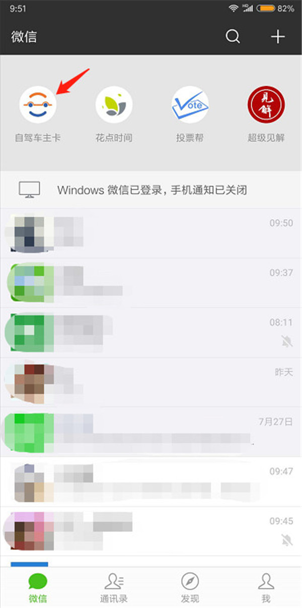 步驟一:抵達景區售票處,打開微信向下拉動,找到或搜索“自駕車主卡”小程序,也可以打開“河南自駕”微信公眾號的底端菜單“車主卡”,直接進入到小程序。