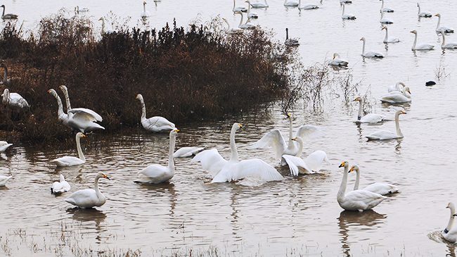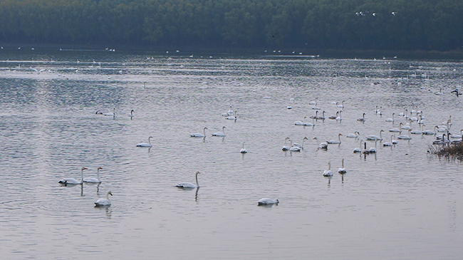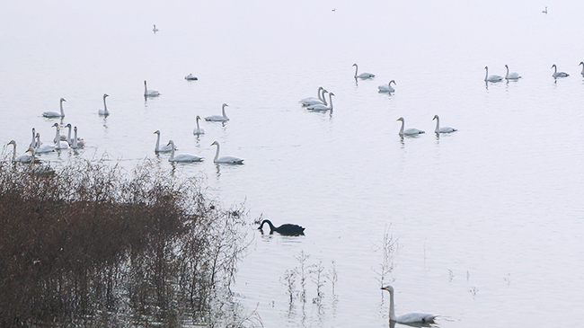 在酒店用過早餐之后,迎來了此次旅行的重頭戲, 天鵝。每年入冬以后到次年初春這段時間,天河湖國家濕地公園就迎來了成千上萬只天鵝,在這里自由自在地飛翔、飄游、嬉水、覓食,修養生息,這里也因此成為三門峽一道亮麗的景觀,招引四方游人爭相觀賞,絡繹不絕。