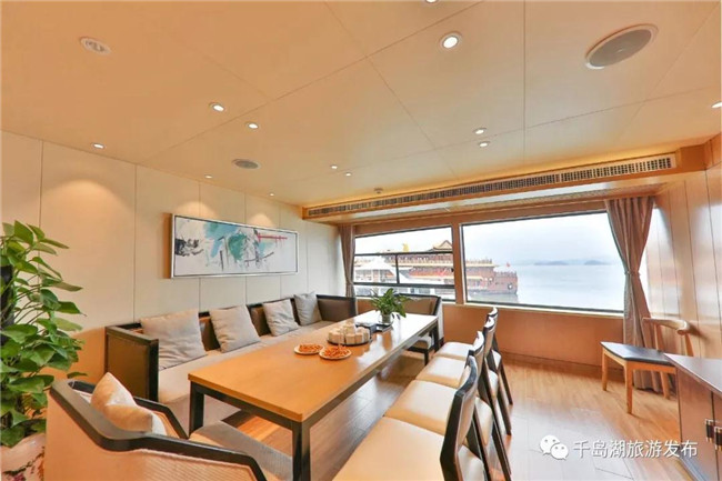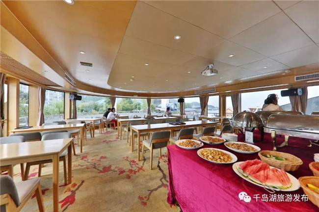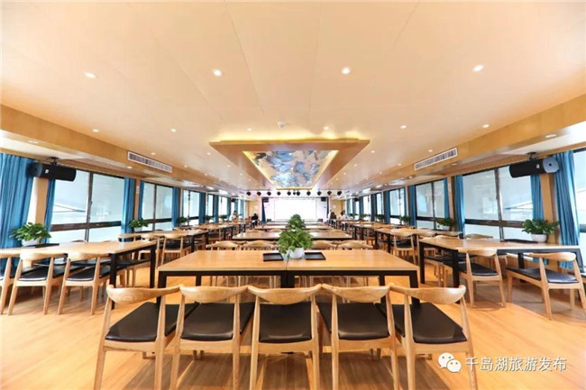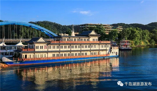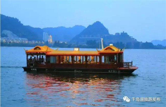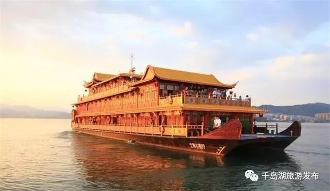 “千旅之星號”一共有兩艘畫舫船,一艘顏色明黃靚麗,一艘以青花瓷為主調(diào),由千島湖旅游集團(tuán)耗資1600萬元精心打造。