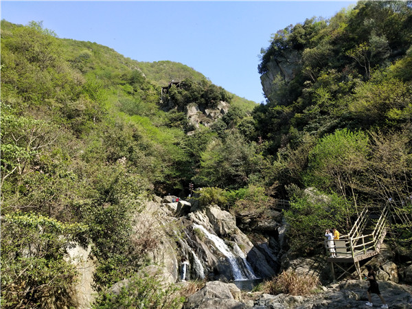 繼續前行,便隱約聽到附近小溪淙淙的流水聲,途中經過一處山澗水壩,碧綠的湖水清澈見底,湖面映著兩旁邊的山林,仿似鋪開了一幅美麗壯觀的山水潑墨畫卷,置身其中,令人迷醉。