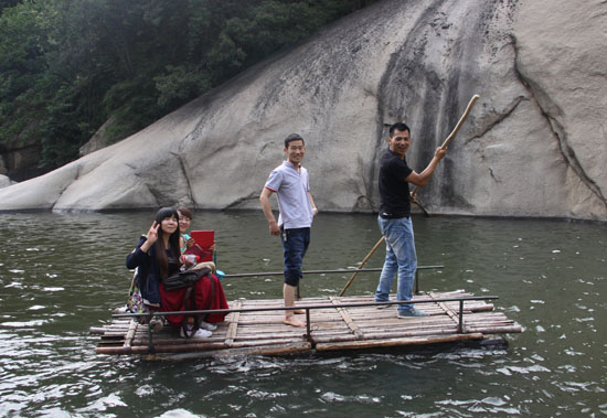 車友們劃船,這就是傳說中的竹筏
