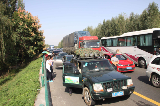 堵車太嚴重,車友們明智的選擇下高速“繞道而行”