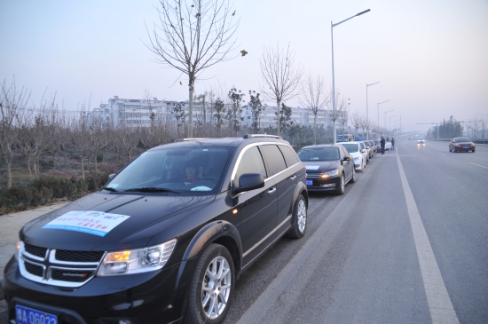 八點準時出發,前往汝陽思源實驗學校,高速路上,我們“馬不停蹄”。暖暖的冬日陽光,車隊很長。