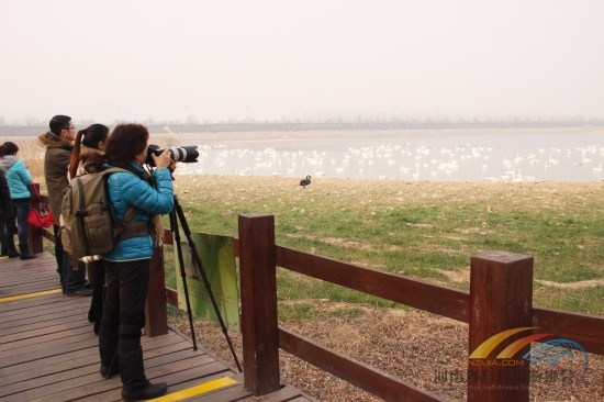 餐后,車友就迫不及待的到天鵝湖國家城市濕地公園,在三門峽庫區(qū)廣闊明澈、碧波蕩漾的湖面上,成千上萬只白天鵝自由自在地飛翔、飄游、嬉水、覓食,安詳?shù)匦摒B(yǎng)生息。這些圣潔的仙鳥,或飛、或游、或走、或臥、或睡、千姿百態(tài),構(gòu)成一副副動人的畫面,招引的車友爭相觀賞,拍照留影。