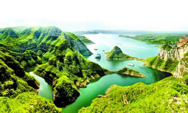 黃河三峽景區位于河南省濟源市,景區既有南國山水的柔媚與婉約,又不失北方山水的雄健與陽剛,三條峽谷各具特色:孤山峽鬼斧神工、群峰競秀;龍鳳峽九曲十折、峽深谷幽;八里峽峭壁如削、雄偉壯觀。景區不僅高峽平湖、港灣交錯、奇峰林立、洞龕眾多,而且還有“鯀山禹斧”的黃河文化、“京娘化鳳”的美麗傳說、“洞天福地”的祈福文化、“犀牛望月”的風水寶地等一系列君王勝跡,被譽為“黃河三峽,皇家山水”,堪稱“中原第一高峽平湖,華夏罕見大河盆景”。