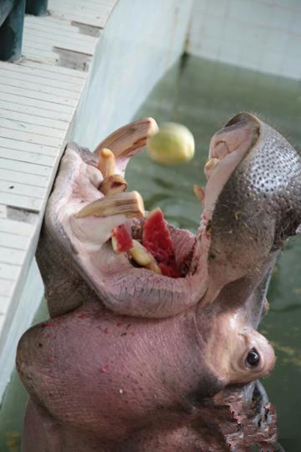 記者從北方森林動物園飼料中心了解到,專供動物的避暑餐都是用料講究、健康美味的“放心產品”,其中包括西瓜、香蕉、葡萄等十多種果蔬和口味多樣、外觀漂亮的冷飲。一般超過28攝氏度,中型猛獸、食草動物、靈長類等動物就應進入“避暑模式”
