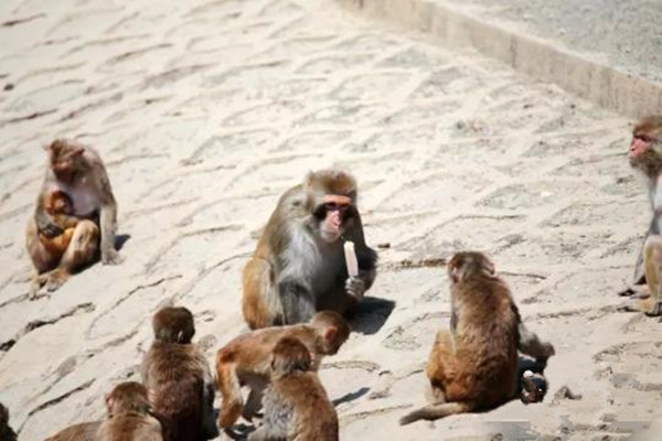 靈長館的狒狒猩猩喜歡吃冰棍,阿拉伯狒狒鐘情原味奶油冰棍,綠狒狒偏愛粉色草莓冰棍。一只叫“老黑”猩猩搶到一只冰棍后,竟捂著嘴笑出聲,三步并兩步跑到陰涼處慢慢享用起來。