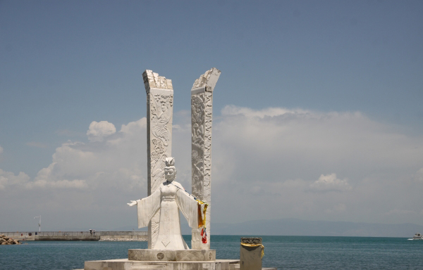 西王母雕像,傳說中的西王母瑤池有多處,而王母最大的瑤池就是青海湖。