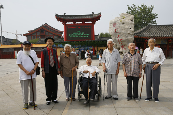 為紀(jì)念中國人民抗日戰(zhàn)爭暨世界反法西斯戰(zhàn)爭勝利70周年,8月31日,國家5A級景區(qū)、國家文化產(chǎn)業(yè)示范基地——開封清明上河園,特邀請7位參加過抗日戰(zhàn)爭的老兵代表,蒲國英、蘇漢光、紀(jì)發(fā)祥、王萬紫、藺洛濤、楊軍、石蘭生及其家屬來園區(qū)游覽并參與座談,共同紀(jì)念抗戰(zhàn)勝利70周年。