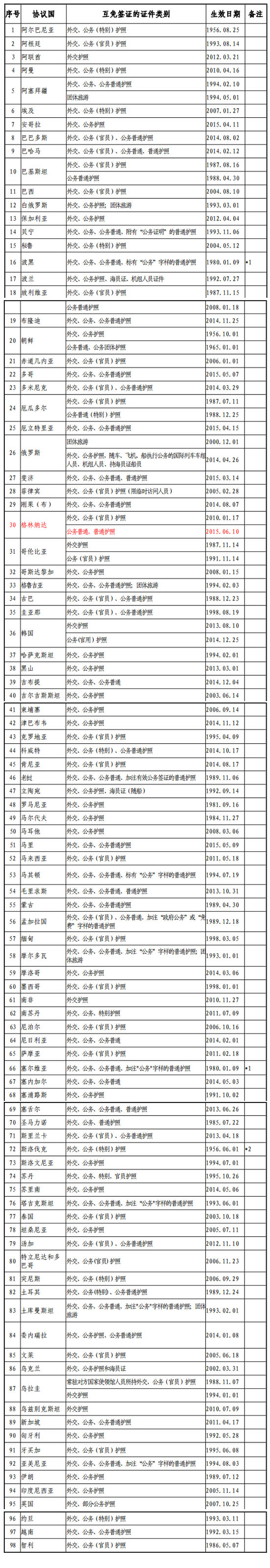 * 免簽入境并不等于可無限期在協定國停留或居住,根據協定要求,持有關護照免簽入境后,一般只允許停留不超過30日。持照人如需停留30日以上,按要求應盡快在當地申請辦理居留手續。