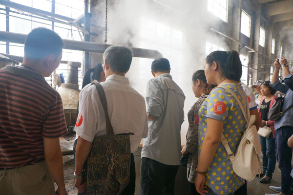 隨后,近200位車友在講解員的帶領下參觀張弓酒的生產工藝流程。