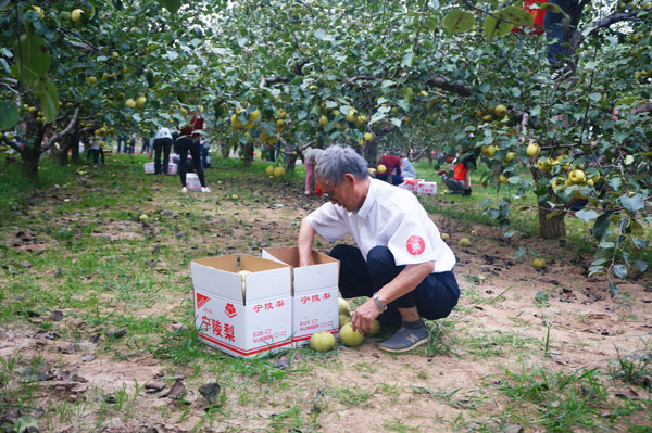 離開張弓酒廠,車隊前往萬頃生態梨園采摘酥梨