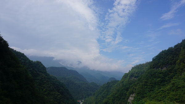 還未到真正的黎坪,白云開始向山體彌漫,風光極美,空氣也是異常清新。