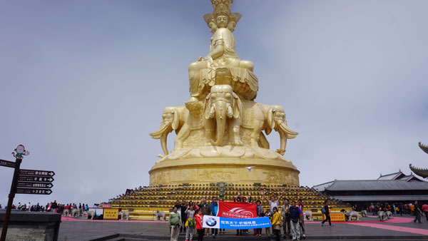 23日,登峨眉金頂,瞻仰普賢菩薩,之后游覽清音閣、生態猴區、一線天等景點。