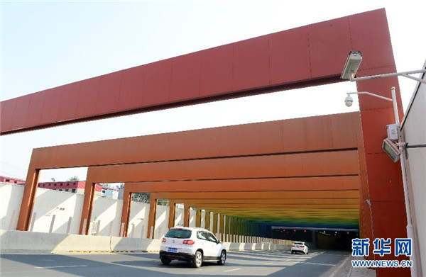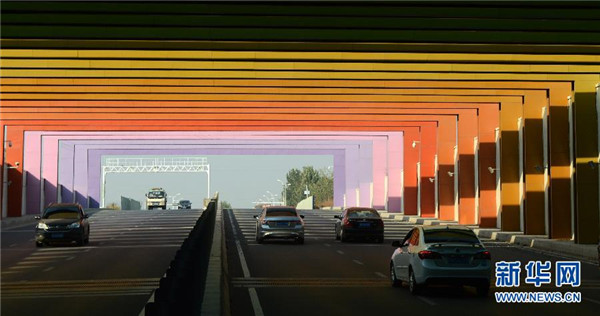 今年6月正式建成通車的鄭開(鄭州至開封)大道與S223省道交叉口北側的一處“彩虹隧道”吸引了市民的關注。該隧道南北兩端的引坡共安裝了80余根彩色U形箱梁,箱梁分為12種不同色彩。據介紹,駕車通過隧道時,會形成“視覺漸變”的效果,在一定程度上可以緩解駕乘人員的視覺疲勞。