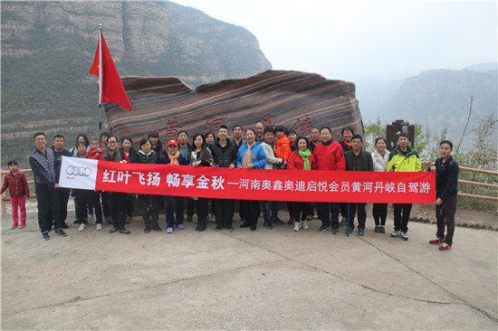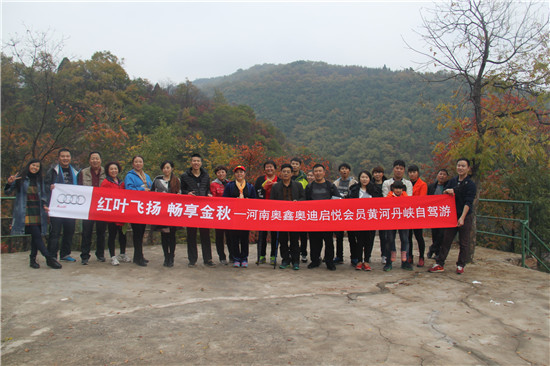 2015年10月31日—11月1日,由河南省自駕旅游協會和河南奧鑫奧迪4S店聯合主辦的“紅葉飛揚,暢享金秋——黃河丹峽自駕游”活動圓滿結束。11輛車、36位車友一起在最美的秋季欣賞了黃河丹峽最紅的景色,一起去尋覓到了最神奇的紅色世界……