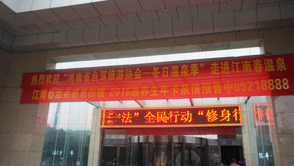 江南春溫泉拉出了歡迎協(xié)會(huì)車友到來的紅色橫幅,十分感謝!