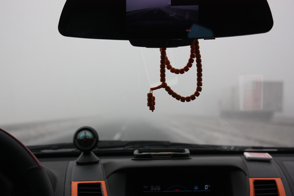 8點10分左右集合完畢出發前往三門峽。自駕車隊行駛途中,由于當天天氣狀況不好——大霧,有許多路段能見度不足50米。我們的資深領隊坤哥、劉隊一點都不敢含糊,作為頭車,一直用對講機向后面的車輛匯報前方的路況,以確保車隊的行駛安全。