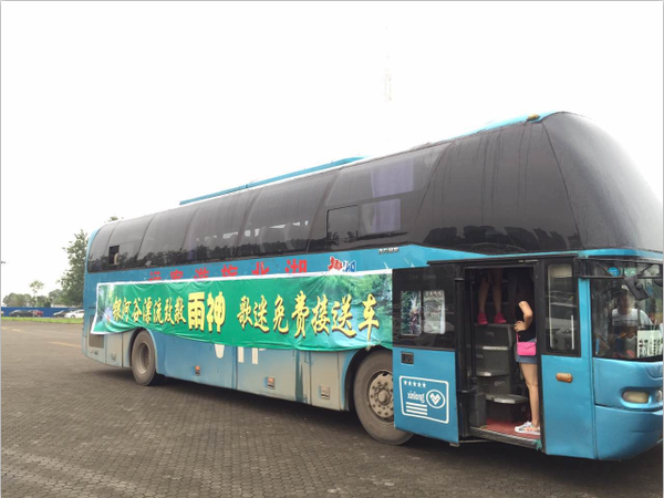 演唱會(huì)當(dāng)天,體育中心周圍出現(xiàn)大量身著銀河谷漂流工作服的人員和大量大巴車車隊(duì)。據(jù)悉,這是銀河谷漂流景區(qū)為致敬蕭敬騰,給參加這次演唱會(huì)的武漢歌迷特地準(zhǔn)備的回饋服務(wù),從下午開始,數(shù)十輛免費(fèi)接送大巴車即從武漢各個(gè)方向免費(fèi)搭乘歌迷前往體育館;而后工作人員在周邊免費(fèi)派送濕身禮包給進(jìn)場歌迷,為歌迷提供貼心服務(wù),最值得一提的是濕身禮包里除了二張漂流券外,還有一件雨衣,你懂的雨神開演唱會(huì)一定會(huì)下雨的,有了這件雨衣就不怕濕身了,果然很貼心。