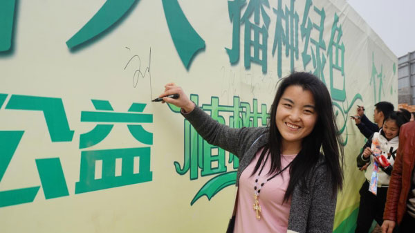 植樹完畢,大家寫上自己的名字留念,接下來還有互動游戲。